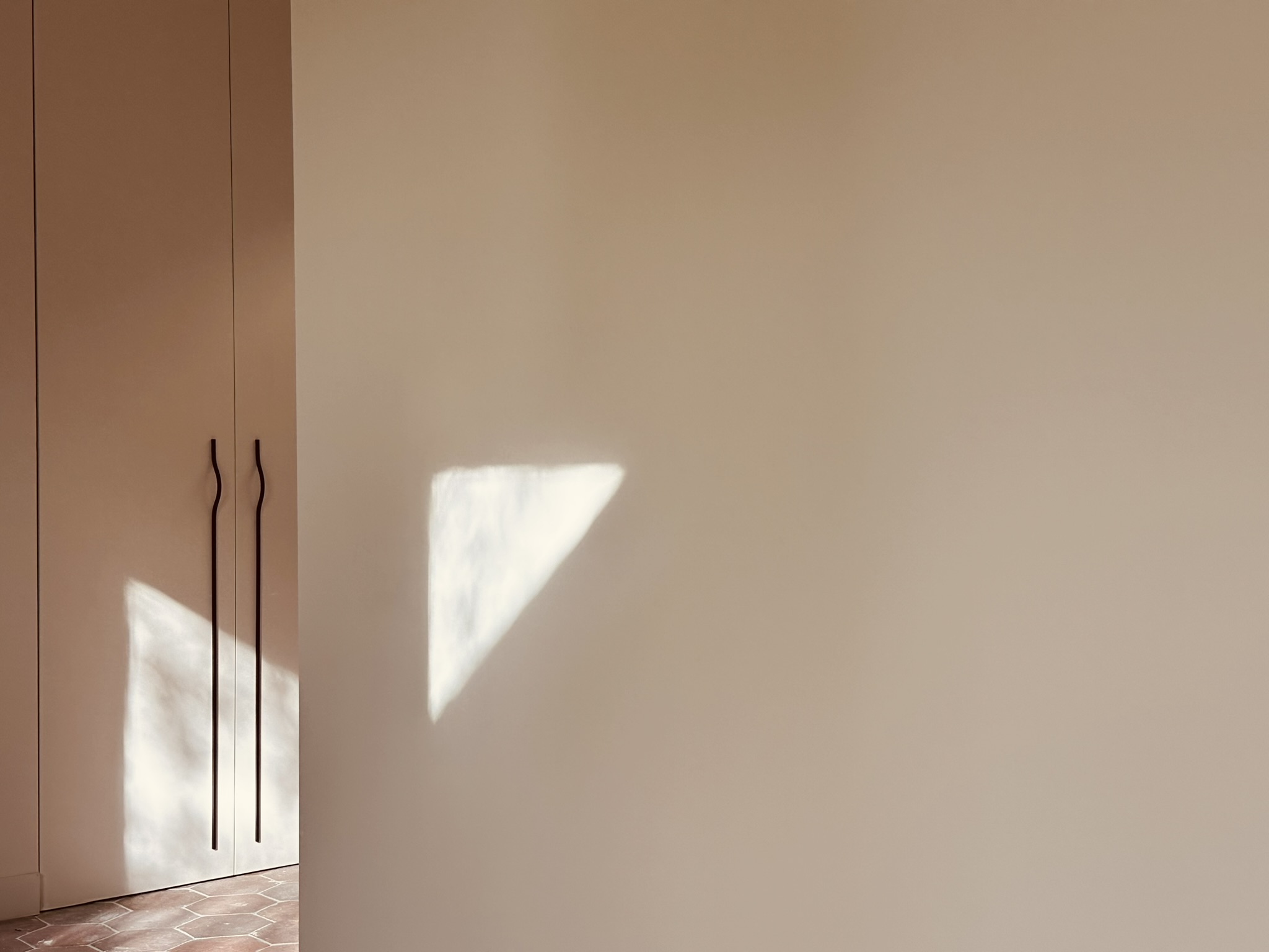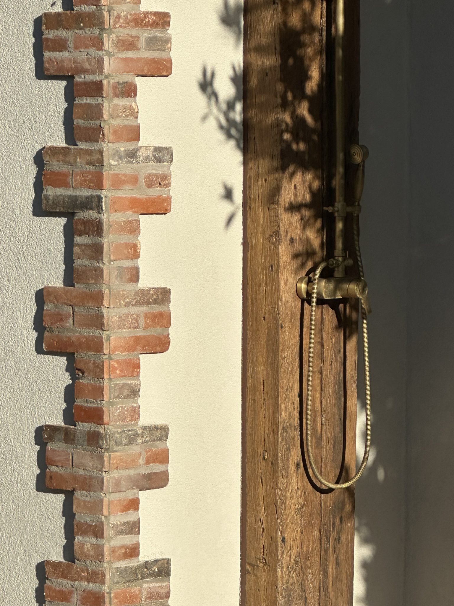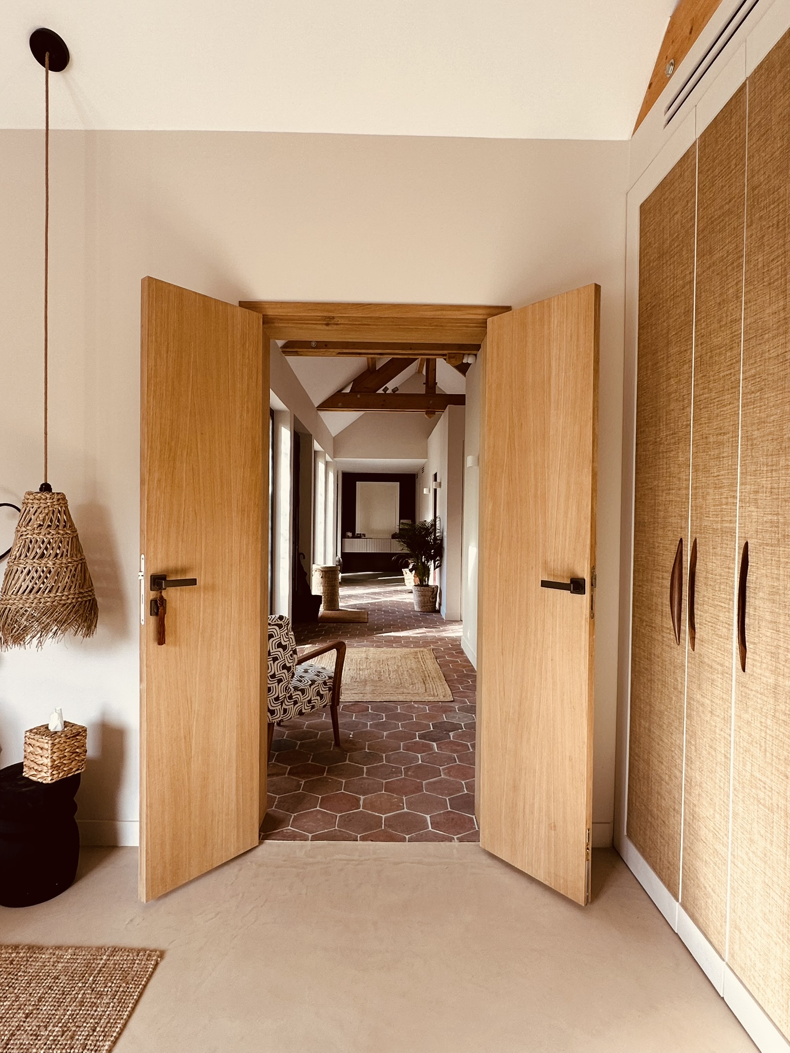 La volonté des propriétaires était de conserver un maximum d’éléments et de matériaux d’origine et d’orienter la décoration vers un esthétisme organique et épuré. Entre vieilles tommettes, poutres et briques originelles, un équilibre a été trouvé entre sobriété et chaleur. Une recherche de simplicité qui est également passée par l’emploi de matériaux bruts tel le béton, la création de nombreux rangements afin de désencombrer au maximum les espaces et l’intégration de pièces chinées et d’artisanat.