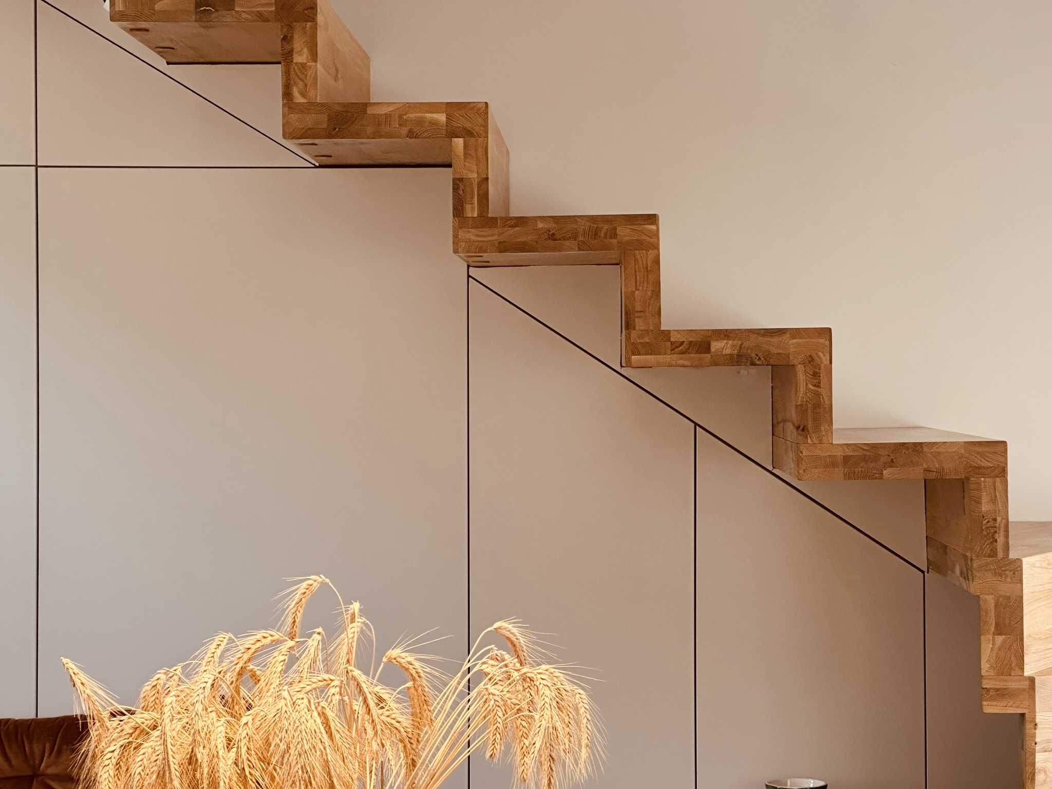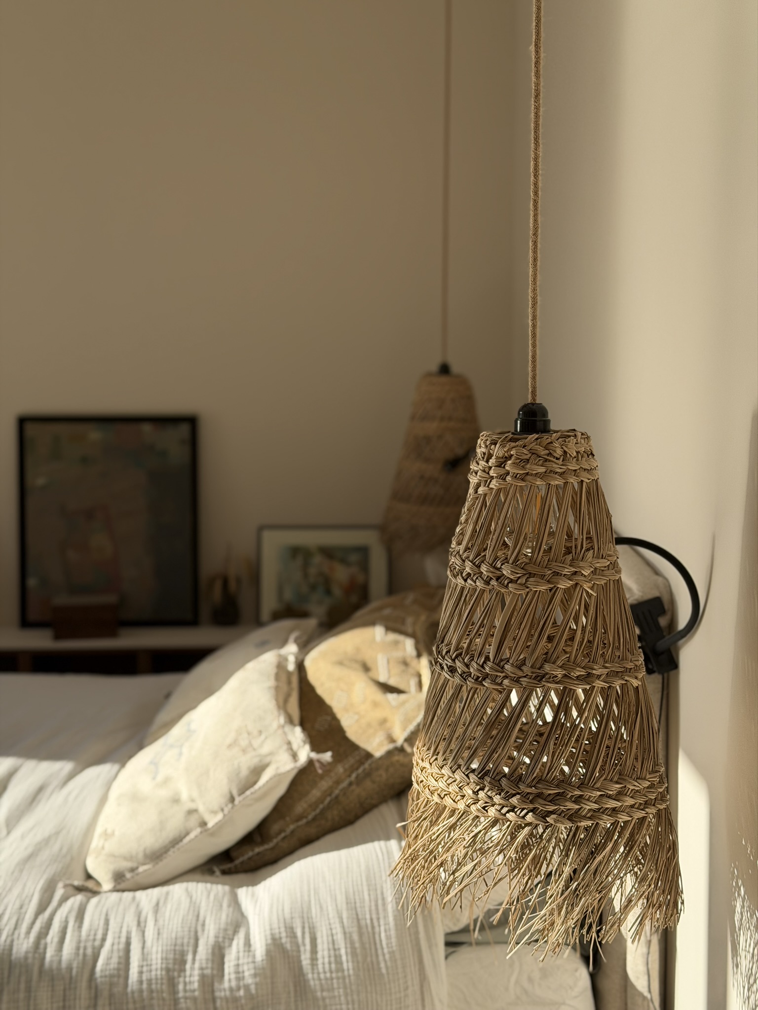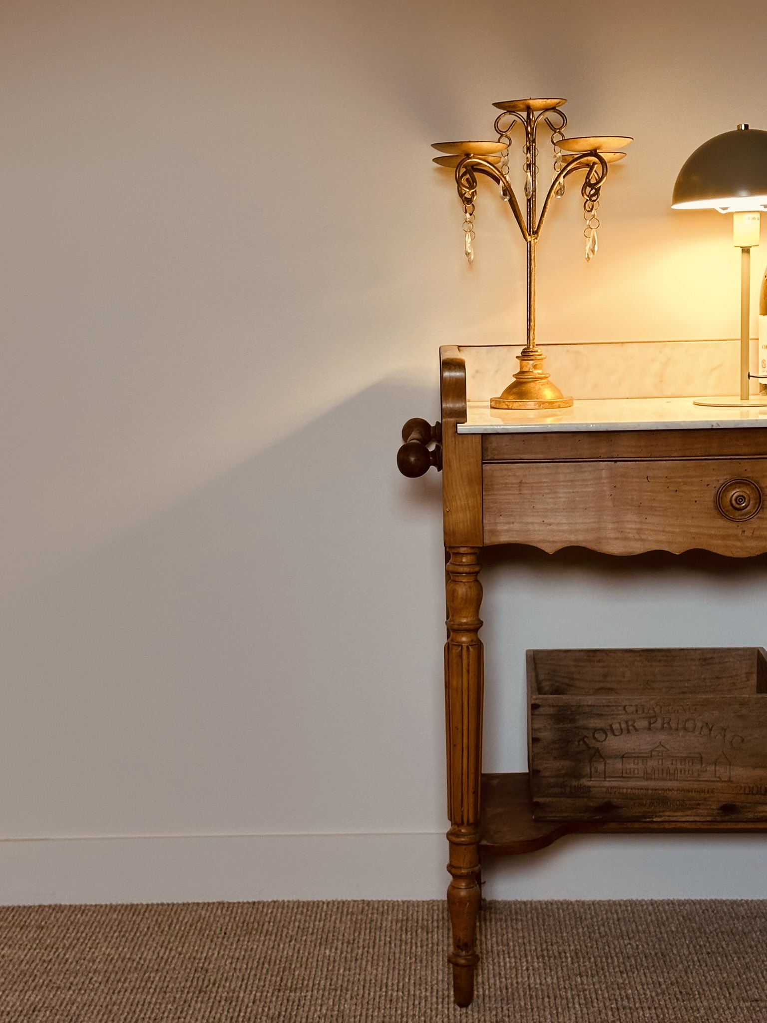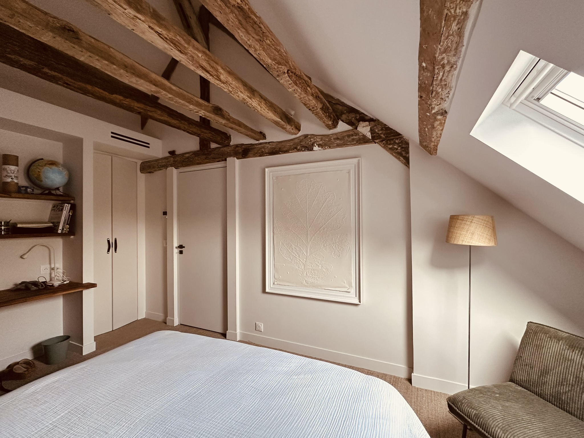 La volonté des propriétaires était de conserver un maximum d’éléments et de matériaux d’origine et d’orienter la décoration vers un esthétisme organique et épuré. Entre vieilles tommettes, poutres et briques originelles, un équilibre a été trouvé entre sobriété et chaleur. Une recherche de simplicité qui est également passée par l’emploi de matériaux bruts tel le béton, la création de nombreux rangements afin de désencombrer au maximum les espaces et l’intégration de pièces chinées et d’artisanat.