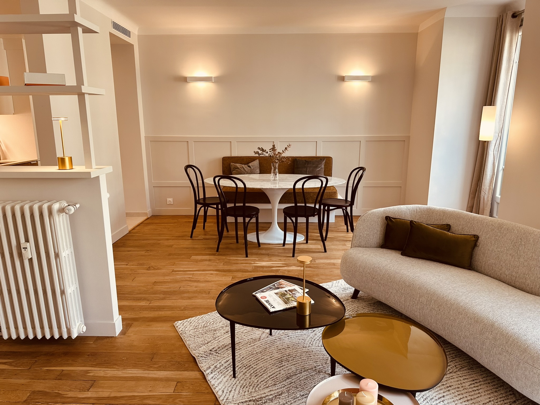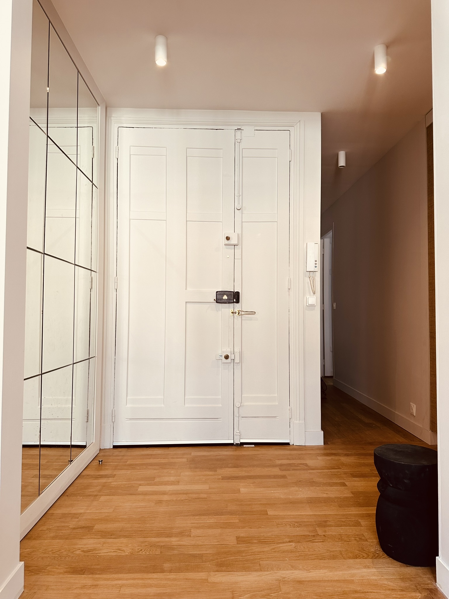 Perché au 6ème étage d’un immeuble années 30 de standing, ce bel appartement de 75 m² est entré dans la modernité ! Lignes épurées et fonctionnalité en font aujourd’hui un cocon urbain très lumineux au plan rationalisé. Il développe désormais une pièce de vie de 32m², une suite parentale, une seconde chambre avec salle d’eau ainsi qu’un toilette d’invités.