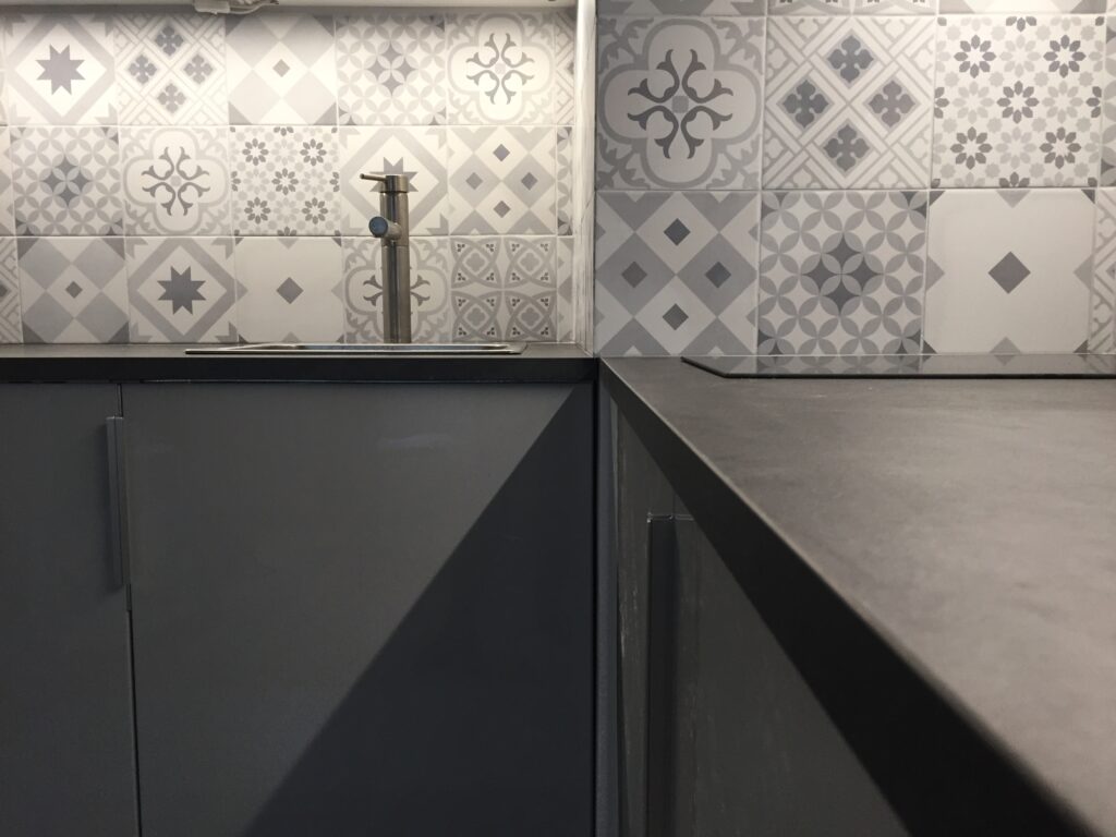 Un appartement qui méritait une distribution plus logique. Une salle de douche a été créée en lieu et place de la cuisine. Dans cette pièce, des carreaux de verre structurent aujourd’hui la douche laissant circuler la lumière. Coté séjour, une cloison a été déposée pour ouvrir la cuisine sur la pièce de vie.